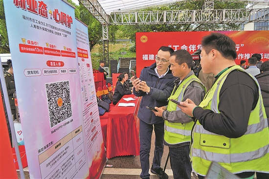 3月15日,福建省總工會、省交通運(yùn)輸廳在福州聯(lián)合開展貨車司機(jī)入會和服務(wù)專項工作推進(jìn)活動。活動通過線上線下方式發(fā)動往返于高速公路服務(wù)區(qū)的貨車司機(jī)體驗(yàn)“掃碼入會”。圖為工會志愿者引導(dǎo)貨車司機(jī)掃碼入會。