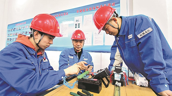 圖為師徒三人分析電氣設(shè)備故障。趙彥 趙鈺 攝
