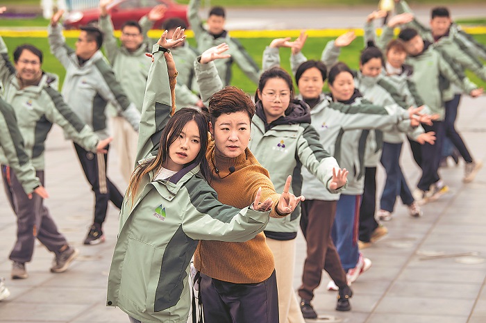 婺劇是國(guó)家級(jí)非物質(zhì)文化遺產(chǎn)。為弘揚(yáng)這一傳統(tǒng)文化,金華市創(chuàng)作了“婺韻廣播操”。今年以來,婺城區(qū)總工會(huì)制訂培訓(xùn)計(jì)劃,力推“婺韻廣播操”進(jìn)車間、進(jìn)社區(qū)、進(jìn)學(xué)校,促進(jìn)職工身心健康,推動(dòng)婺劇傳承發(fā)展。本報(bào)通訊員 胡肖飛 攝