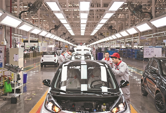3月19日,奇瑞新能源汽車(chē)股份有限公司石家莊分公司的工人在總裝車(chē)間生產(chǎn)線(xiàn)上工作。