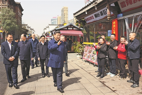 3月18日至21日,中共中央總書記、國家主席、中央軍委主席習(xí)近平在湖南考察。這是19日上午,習(xí)近平在常德河街考察時(shí),同店主和游客親切交流。
