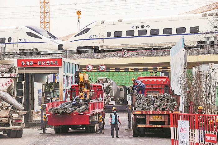 3月21日中午,作業(yè)車輛從工地北側(cè)的京哈鐵路線下經(jīng)過(guò)。