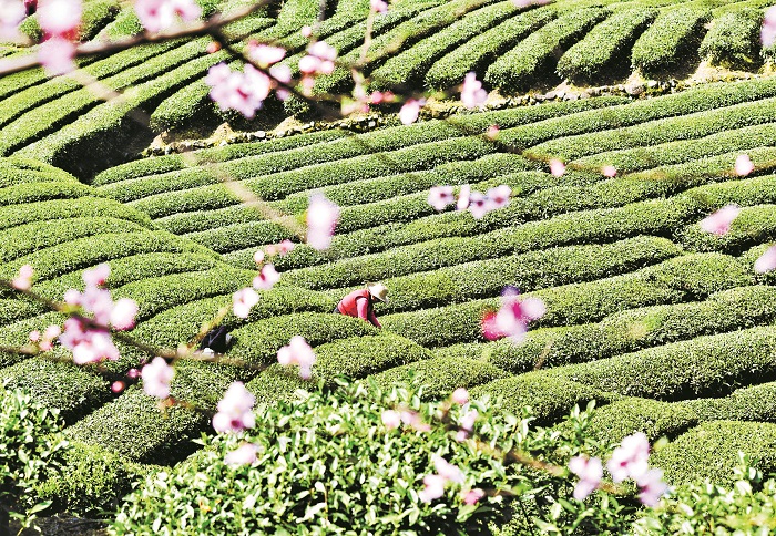 3月19日,三峽庫區(qū)湖北省宜昌市秭歸縣11萬多畝茶葉陸續(xù)進入采摘期,茶農(nóng)在茅坪鎮(zhèn)松樹坳村一茶園采摘春茶。本報通訊員 王輝富 攝