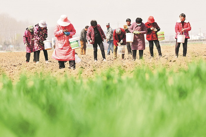 3月21日,河南省焦作市溫縣祥云鎮(zhèn)平王村,農(nóng)民在田間播種丹參。本報通訊員 徐宏星 攝