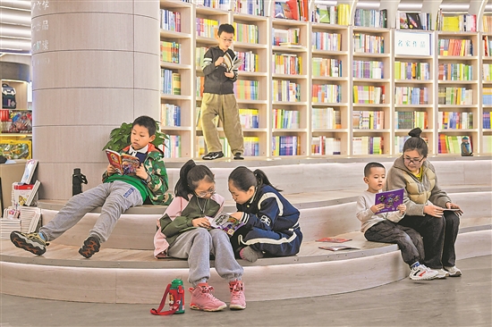 3月24日,小朋友與家長在內(nèi)蒙古自治區(qū)呼和浩特市回民區(qū)的新華書店(中山路店)閱讀。時值周末,許多市民走進(jìn)書店,在品味書香中歡度周末時光。新華社記者 李志鵬 攝