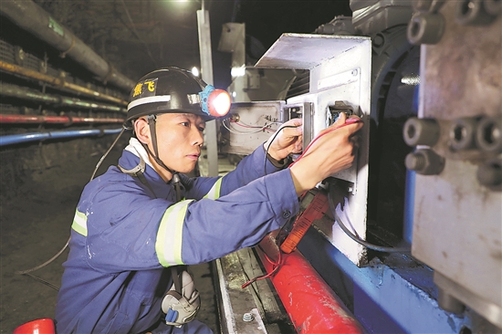 圖為焦飛在井下檢修設(shè)備。 受訪者供圖
