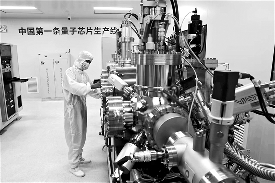 圖為工作人員在量子芯片生產線檢查儀器。代群 攝
