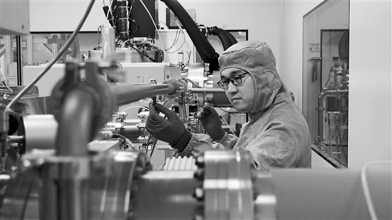 圖為本源量子芯片總監(jiān)賈志龍博士正在中國首條量子芯片生產線上工作。代群 攝