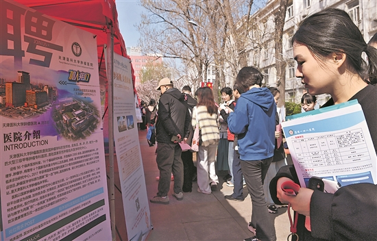 3月31日,天津醫(yī)科大學2024屆畢業(yè)生春季專場招聘會在學校世紀大道舉行。據了解,來自全國10余個省市的約300家醫(yī)療衛(wèi)生單位帶來了數千個就業(yè)崗位供畢業(yè)生選擇。