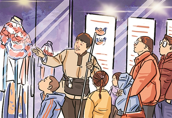 “有些游客大老遠跑來,錯過了館內的講解時段,我就幫忙解答一些問題,不讓游客留遺憾?!闭f話間,孫寶菊從腰包里掏出抹布,輕輕擦拭著展廳玻璃上的指印。