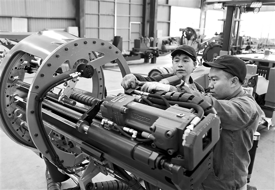 4月2日,工人在河北省秦皇島市昌黎縣一家工程機械設(shè)備企業(yè)的生產(chǎn)車間工作。
