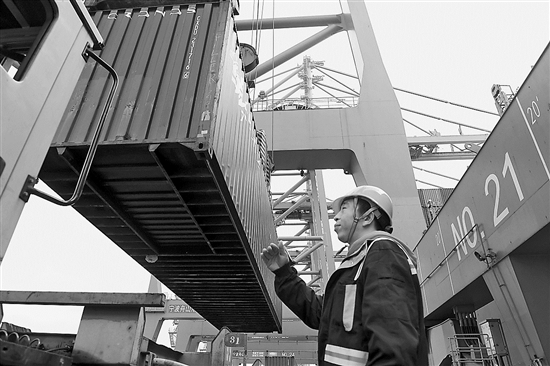 4月2日,在浙江省寧波市舟山港梅山港區(qū),地面工作人員協(xié)助指揮貨物裝卸。今年以來,寧波舟山港生產(chǎn)作業(yè)持續(xù)繁忙。1至2月,完成貨物吞吐量2.27億噸,同比增長4.9%;完成集裝箱吞吐量612萬標(biāo)準(zhǔn)箱,同比增長15.3%。