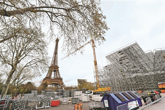 這是近日在法國(guó)巴黎埃菲爾鐵塔附近戰(zhàn)神廣場(chǎng)拍攝的奧運(yùn)比賽場(chǎng)地和看臺(tái)建設(shè)工地。巴黎奧運(yùn)會(huì)將于2024年7月26日至8月11日舉行。新華社記者 高靜 攝
