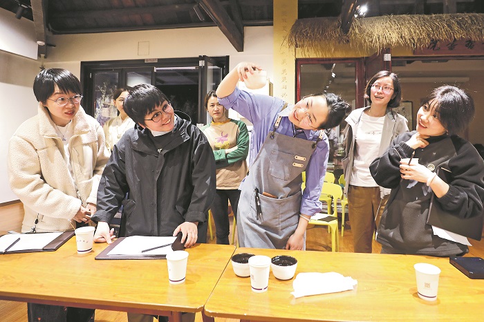 3月28日晚,南京江北新區(qū)臨江社區(qū)青年夜校咖啡品鑒課程。