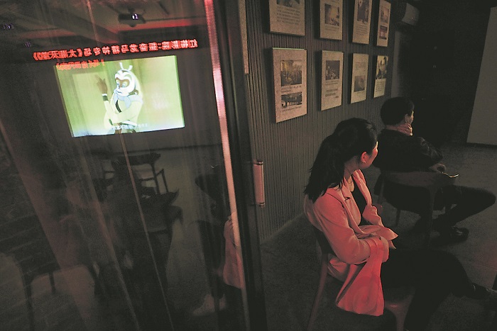4月1日晚,南京市玄武區(qū)小紅梅信仰生活空間觀影活動正在播放《大鬧天宮》。