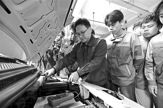 4月8日,在位于重慶市沙坪壩區(qū)的重慶能源工業(yè)技師學(xué)院實訓(xùn)室,新能源汽車制造與維修專業(yè)的學(xué)生們正在上實訓(xùn)課。該校推動職業(yè)教育與區(qū)域、產(chǎn)業(yè)、企業(yè)深度融合,培養(yǎng)高素質(zhì)技能人才服務(wù)地方經(jīng)濟發(fā)展,為企業(yè)量身打造“來即上崗、無縫銜接”的專業(yè)技能型人才。視覺中國 供圖