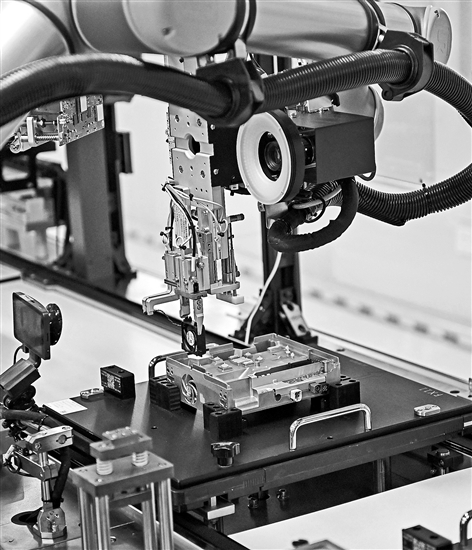 在江蘇無(wú)錫車聯(lián)天下信息技術(shù)有限公司,機(jī)器人在生產(chǎn)智能網(wǎng)聯(lián)汽車座艙域控制器。新華社記者 季春鵬 攝