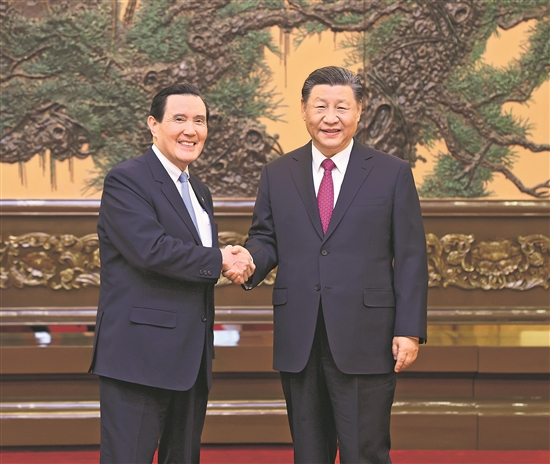 4月10日下午,中共中央總書記習(xí)近平在北京會見馬英九一行。新華社記者 鞠鵬 攝