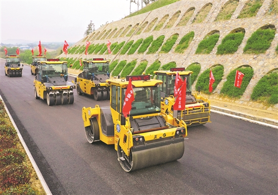 4月11日,無人駕駛壓路機在作業(yè)中。