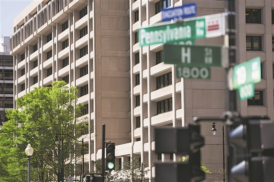 這是當(dāng)?shù)貢r間4月16日在美國華盛頓拍攝的國際貨幣基金組織總部。