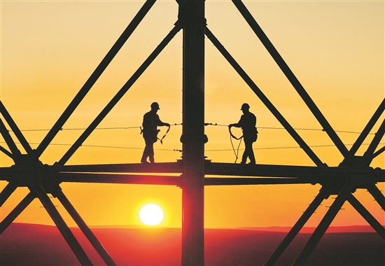 眼下,張北—勝利1000千伏特高壓輸電交流項目工程內蒙古段組塔工作進入高峰階段,施工人員搶抓工期,力爭早日完成組塔任務。該項目起于河北省張家口市張北變電站,止于內蒙古錫林浩特市勝利變電站,于2023年8月開工建設,是國家“十四五”電力發(fā)展規(guī)劃重點項目,計劃年內投入運行。