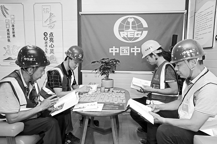 4月17日,工友們正在廣東省深圳市寶安區(qū)的一處“致知力行”職工書屋舉辦讀書沙龍活動。當天上午,中國中鐵建工集團書香建工“致知力行”讀書協(xié)會在灣區(qū)產業(yè)投資大廈項目正式揭牌成立,專業(yè)講師圍繞溝通、管理、談判等方面開展培訓,深圳市總工會和公司還將清涼物資送至一線工友手中。 本報記者 劉友婷 本報通訊員 王海兵 攝