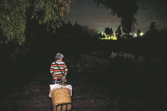 4月17日,我與周慶蘭婆婆一同出發(fā)。拍攝中,我提議與她交換背負(fù)。在我的堅(jiān)持下,婆婆的背簍與我的相機(jī)進(jìn)行了交換。我本以為自己已經(jīng)做好了準(zhǔn)備,但背簍的重量讓我吃驚。很難想象,73歲的周慶蘭婆婆幾乎每天都要背負(fù)30多斤的蔬菜,步行近1個(gè)小時(shí),再坐地鐵近2個(gè)小時(shí)到達(dá)城里的菜市場去賣菜。