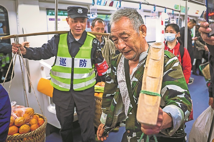 “每逢尾數(shù)是1、4、7的日子都有大集,這些菜農(nóng)都在這里乘坐4號線,在保稅港換乘9號線到觀音橋去趕大集。每到這些日子,石船站早上的人流量就很大,所以,我們將石船站的開門時(shí)間,從之前的6時(shí)18分,提前到了6時(shí)5分,還在車上設(shè)置了‘背簍專廂’?!敝貞c地鐵四號線公司車服部負(fù)責(zé)人柳絮介紹。