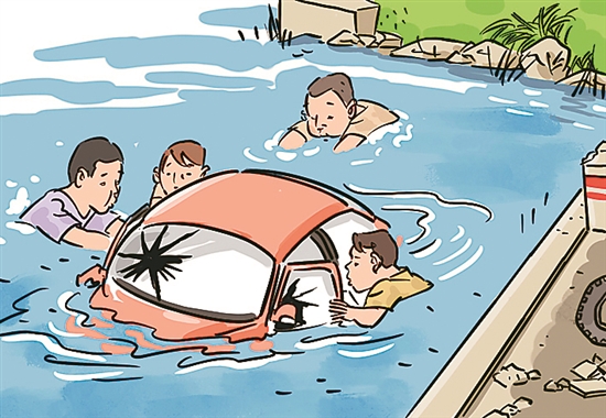 情況非常危險,陳某陷入昏迷,車輛也在緩緩沉入水中。先趕到的顧挺呼喊妻子撥打急救和報警電話后,拔腿往河邊狂奔。