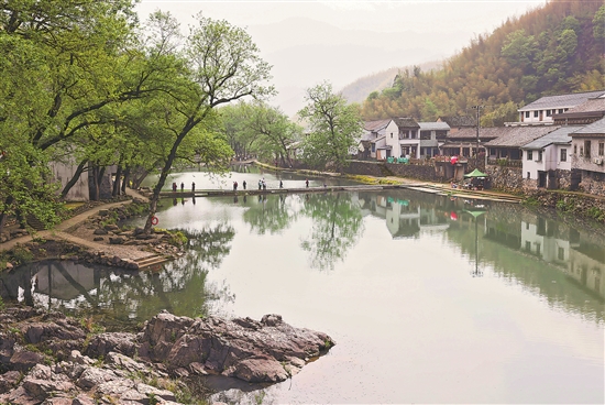 4月13日,游客在浙江省余姚市鹿亭鄉(xiāng)中村的曉鹿大溪上游玩。