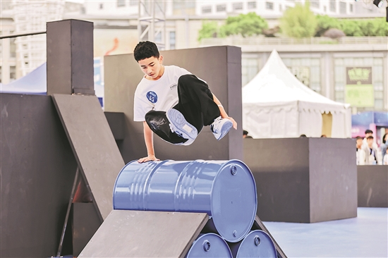 2024“一帶一路”國(guó)際跑酷大師賽于近日在浙江寧波天一廣場(chǎng)圓滿落幕。本屆賽程為兩天,主賽為國(guó)際跑酷大師賽,附賽為全國(guó)少兒跑酷大賽和大眾體驗(yàn)賽,吸引了來(lái)自新加坡、西班牙、泰國(guó)、德國(guó)、韓國(guó)、日本等國(guó)家的跑酷好手參賽。經(jīng)過(guò)激烈的角逐,各項(xiàng)目冠軍逐一產(chǎn)生。主場(chǎng)作戰(zhàn)的中國(guó)選手李金濤以27.67秒的成績(jī)跑出了中國(guó)速度,問(wèn)鼎個(gè)人競(jìng)速賽決賽冠軍。謝雨琪 王劍波 攝