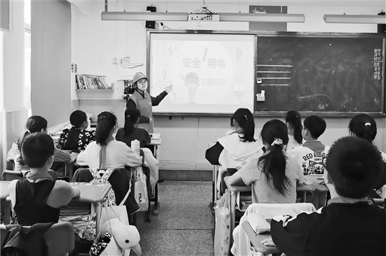 “五一”小長假前夕,國家電網(wǎng)浙江諸暨電力“暖心燈”志愿服務(wù)隊楓橋供電所分隊走進(jìn)東和鄉(xiāng)小學(xué),利用課余時間為學(xué)生們講解用電安全小知識,詳解電力法律法規(guī),保障小朋友們假期的人身安全。