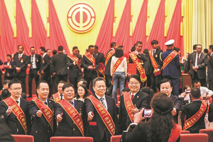 4月28日,2024年慶?!拔逡弧眹H勞動(dòng)節(jié)暨全國五一勞動(dòng)獎(jiǎng)和全國工人先鋒號(hào)表彰大會(huì)在北京人民大會(huì)堂舉行。表彰大會(huì)結(jié)束后,獲獎(jiǎng)代表在現(xiàn)場拍照留念。