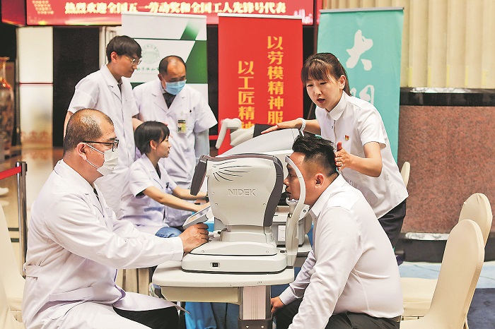 4月27日,中國職工之家,剛剛抵達(dá)駐地的代表們進(jìn)行免費(fèi)的眼睛檢測。