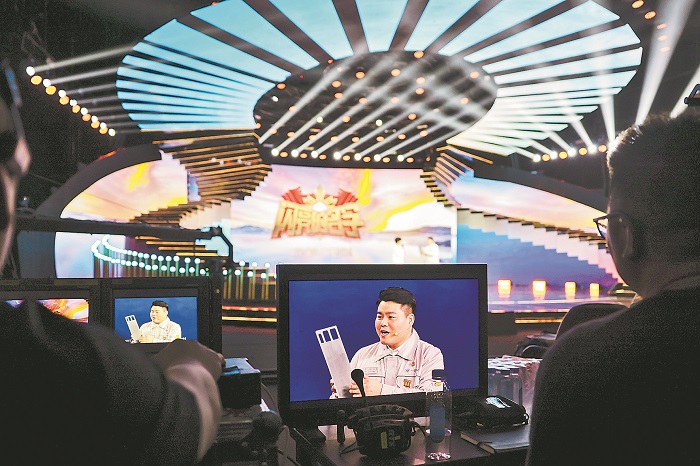4月24日,北京,2024年“最美職工”發(fā)布儀式錄制現(xiàn)場,來自一汽解放汽車有限公司商用車開發(fā)院試制部的數(shù)控機(jī)床技能師時(shí)敬龍?jiān)谥v述自己的故事。
