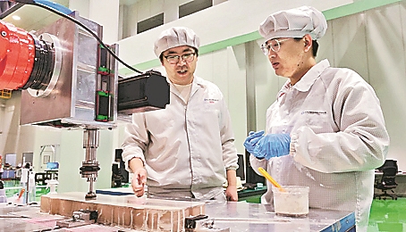 為提升加工精度,團隊成員絞盡腦汁。起初拋光鏡面時,很容易出現(xiàn)劃痕或瑕疵,他們連續(xù)加班了3個多月,做了很多試驗,不斷修改加工參數(shù),嘗試不同材質(zhì)的拋光工具和不同粒徑的磨料,更換不同的添加劑、摸索不同的組合,終于找到了最佳工藝參數(shù)。