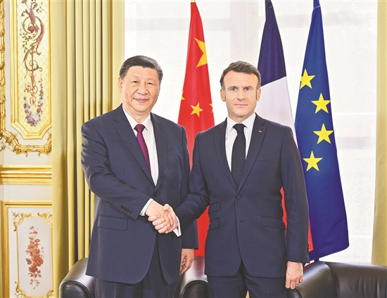 特殊在責(zé)任擔(dān)當(dāng)。歷史多次證明,中法攜手能夠造福世界。當(dāng)今世界變亂交織,烏克蘭危機(jī)、巴以沖突延宕不止,世界經(jīng)濟(jì)復(fù)蘇乏力,氣候變化等全球性挑戰(zhàn)日益艱巨。中法作為聯(lián)合國(guó)安理會(huì)常任理事國(guó),理應(yīng)擔(dān)負(fù)更大責(zé)任。我和馬克龍總統(tǒng)一致同意,將秉持建交初心,深化中法高水平互信和合作,加強(qiáng)在重大國(guó)際問題上的溝通和協(xié)作,共同為迷茫的世界注入希望,為人類的進(jìn)步探索方向。我相信,有歷史的沉淀、現(xiàn)實(shí)的基礎(chǔ)、未來的藍(lán)圖,中法關(guān)系必將如春天般充滿生機(jī)、欣欣向榮。