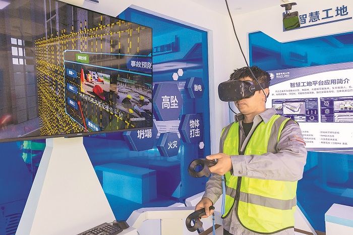 該基地設(shè)立VR安全教育體驗(yàn)館,定期分批組織建筑工人開展安全教育培訓(xùn)。通過VR虛擬場景,模擬進(jìn)行高處墜落、欄桿傾倒、觸電、高空墜物機(jī)械撞擊等體驗(yàn),提高工人們的安全防范意識(shí)和自我保護(hù)技能。