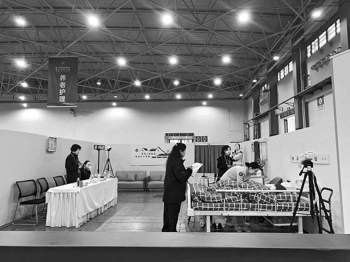 5月8日至10日,第二屆全國鄉(xiāng)村振興職業(yè)技能大賽在貴州省貴陽市舉辦。大賽圍繞農村實用技能,設砌筑、汽車維修、農機修理、電工、美發(fā)、養(yǎng)老護理、育嬰等11個比賽項目,旨在通過各地培訓和選拔,帶動更多人關注技能、學習技能、提升技能,激發(fā)他們在鄉(xiāng)村振興過程中施展才干、建功立業(yè)。圖為養(yǎng)老護理項目比賽現(xiàn)場。本報記者 李丹青 攝