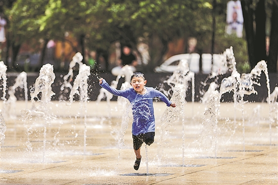 近日,在墨西哥首都墨西哥城,兒童戲水消暑。