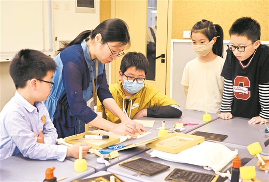 5月19日,在上海市逸夫職業(yè)技術(shù)學(xué)校,小學(xué)生們?cè)隗w驗(yàn)活字印刷。當(dāng)日,2024年上海職業(yè)教育活動(dòng)月正式啟動(dòng),通過(guò)“職業(yè)體驗(yàn)”“優(yōu)秀傳統(tǒng)文化進(jìn)校園”等系列活動(dòng),展示上海職業(yè)教育改革的成果、經(jīng)驗(yàn)和貢獻(xiàn)。新華社記者 劉穎 攝