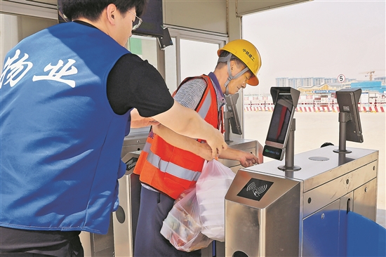 5月18日,在河北雄安新區(qū)中鐵建工雄忻高鐵3標(biāo)項(xiàng)目工地,物業(yè)工作人員把一個(gè)焊工班組的午餐打包后從生活區(qū)送到工地入口處,再轉(zhuǎn)交給訂餐的職工。據(jù)了解,為了保證工程進(jìn)度,有部分班組需要加班加點(diǎn)作業(yè),午休時(shí)間較短。為讓這些職工減少用餐時(shí)間,增加休息時(shí)間,項(xiàng)目生活區(qū)的物業(yè)工作人員送餐到工地,受到職工歡迎。本報(bào)記者 吳凡 攝