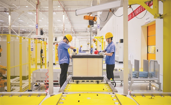 5月19日,工人在位于廣東珠海的緯景儲能珠?!俺珿工廠”工作。該項目是先進液流儲能電池及系統(tǒng)的智能制造中心。