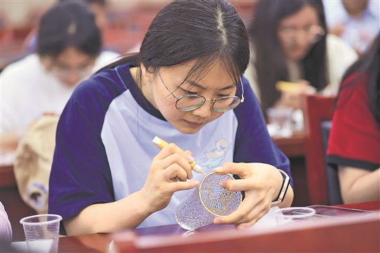 5月20日,安徽省淮北市總工會職工興趣班課堂上,報名參加培訓的職工正在進行彩繪玻璃藝術制作。據(jù)了解,淮北市總工會采取“菜單式供給+點單式送學”培訓模式,根據(jù)職工想學、愛學的內(nèi)容,推出手機攝影、短視頻制作、手工制作、茶藝、國畫、瑜伽等10余類培訓課程,深受職工歡迎。本報通訊員 張鋒 攝
