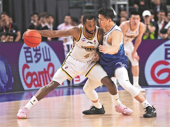 圖為遼寧隊球員弗格(左)在比賽中面對新疆隊黃榮奇的防守。新華社記者 雒圓 攝
