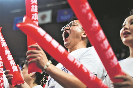 圖為新疆隊球迷在比賽中為球隊加油助威。 新華社記者 王菲 攝