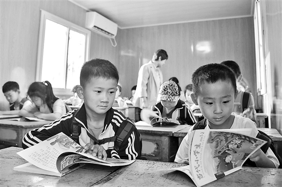 5月20日,在萊蕪區(qū)雪野街道黑山村“學生驛站”,放學后的小學生閱讀課外書籍等候家長。