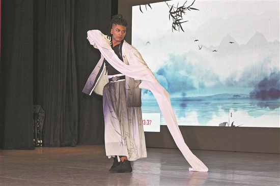 “漢語(yǔ)橋”中文比賽近日分別在突尼斯、南非、捷克、馬耳他、波蘭舉行。圖為近日,參賽選手在南非開普敦舉行的第23屆“漢語(yǔ)橋”世界大學(xué)生中文比賽南非賽區(qū)決賽上進(jìn)行才藝展示。新華社記者 王雷 攝