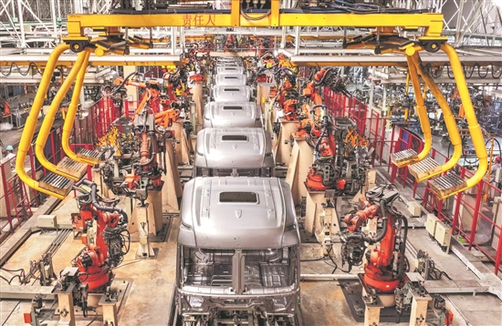 5月7日,安徽省馬鞍山經(jīng)開區(qū)漢馬科技重卡全自動焊接生產(chǎn)線上,工業(yè)機器人在進行焊接作業(yè)。近年來,馬鞍山搶抓新能源汽車產(chǎn)業(yè)快速發(fā)展機遇,當?shù)仄髽I(yè)加大轉(zhuǎn)型升級步伐,發(fā)展新質(zhì)生產(chǎn)力,開發(fā)的新能源重卡暢銷國內(nèi)外市場。