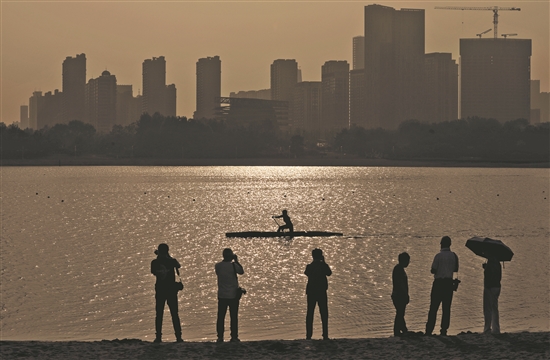 5月23日,在山東省日照市東港區(qū)奧林匹克水上公園,記者拍攝山東皮劃艇隊和山東賽艇隊的訓(xùn)練。